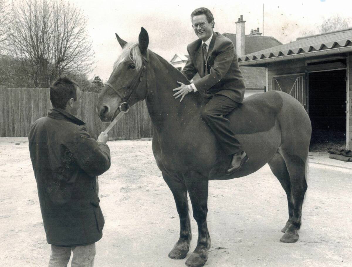 Course des journalistes à Longchamp (17 octobre 1996) : En selle sur ce magnifique alezan, prêté par l'AFASEC (école des jockeys), je me suis classé deuxième de... Peter Scudamore, qui venait juste d'obtenir sa carte de presse, en qualité de correspondant du Daily Express. Peter Scudamore fut longtemps le recordman du monde des victoires en courses d'obstacle. Autant dire que je me considère comme le gagnant moral....
